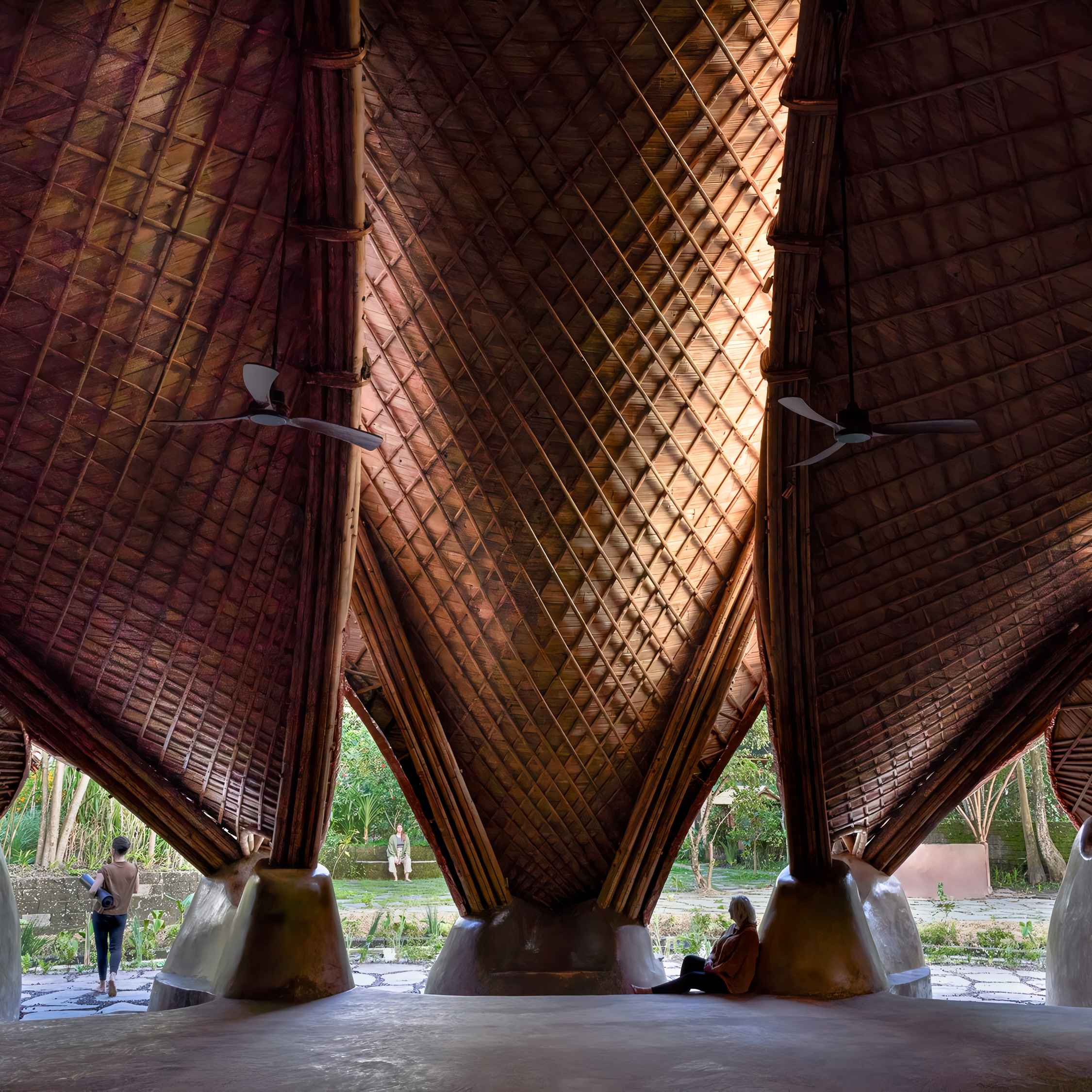Following the architectural breakthroughs seen in the Arc at Green School, The Lumi Shala employs similar innovative techniques, but with a fresh dynamic. Prescriptively curved, meticulously detailed bundled bamboo arches, tied together with structural anticlastic grid shells, achieve the clear spans of 21 meters. These features not only enhance the structural integrity but also contribute to the airy lightness of the interior.