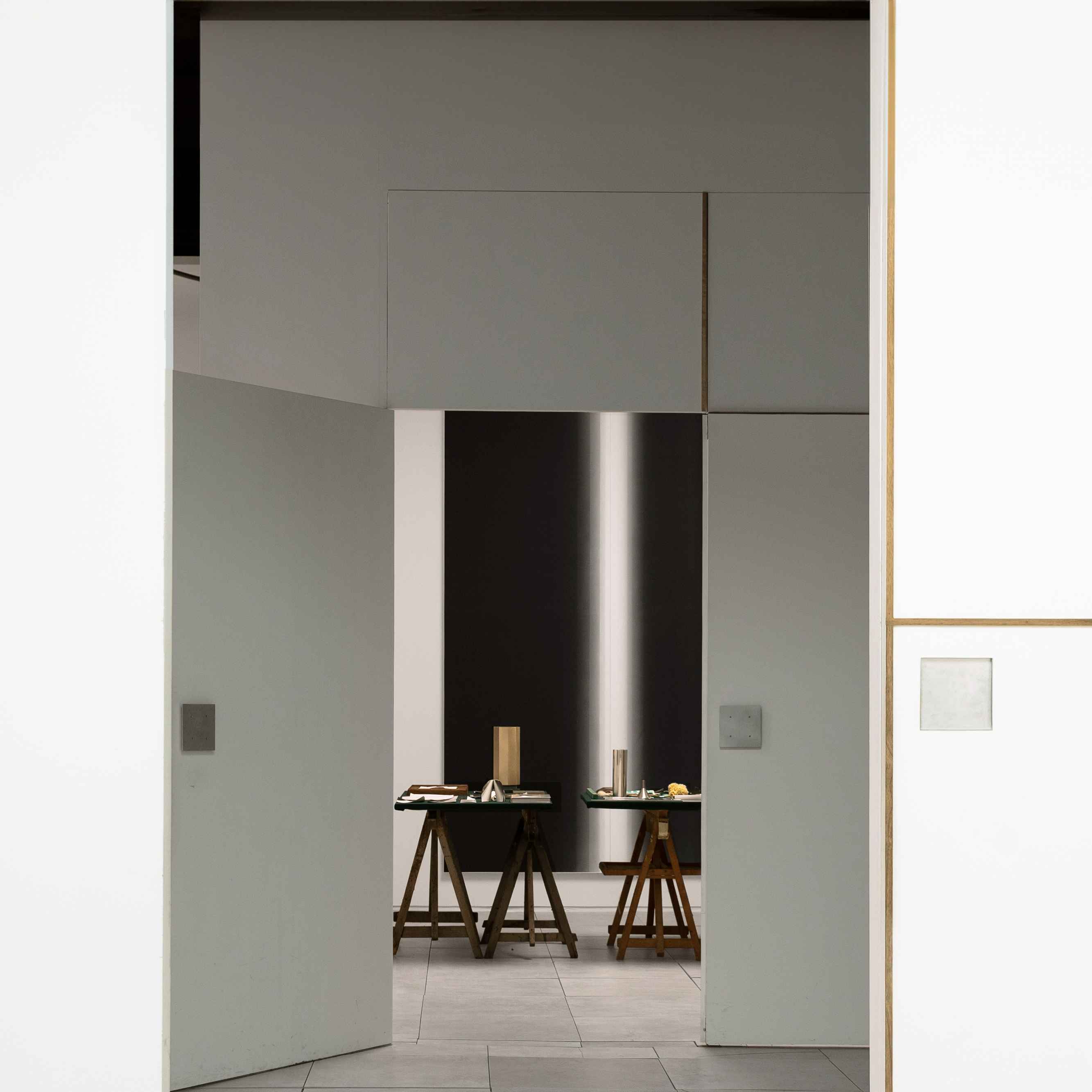 Kangawa’s signature work, Light and shadow inside me (2022–), is a series of two-dimensional works created entirely through light. Earlier variations consisted of paper coated with water-based pigments, folded into polyhedral origami-like forms, and left under the sun for several weeks to produce natural gradations. A later variation—serving as the inspiration for this collection—features monochromatic compositions where photographic paper was folded into similar forms and selectively exposed to artificial light in a darkroom, creating photograms. Kangawa’s technique relies fully on light and shadow as both material and medium, reflecting our bodily existence and what lies beyond it.